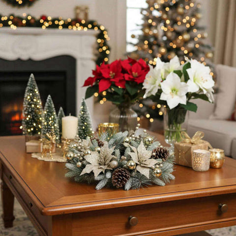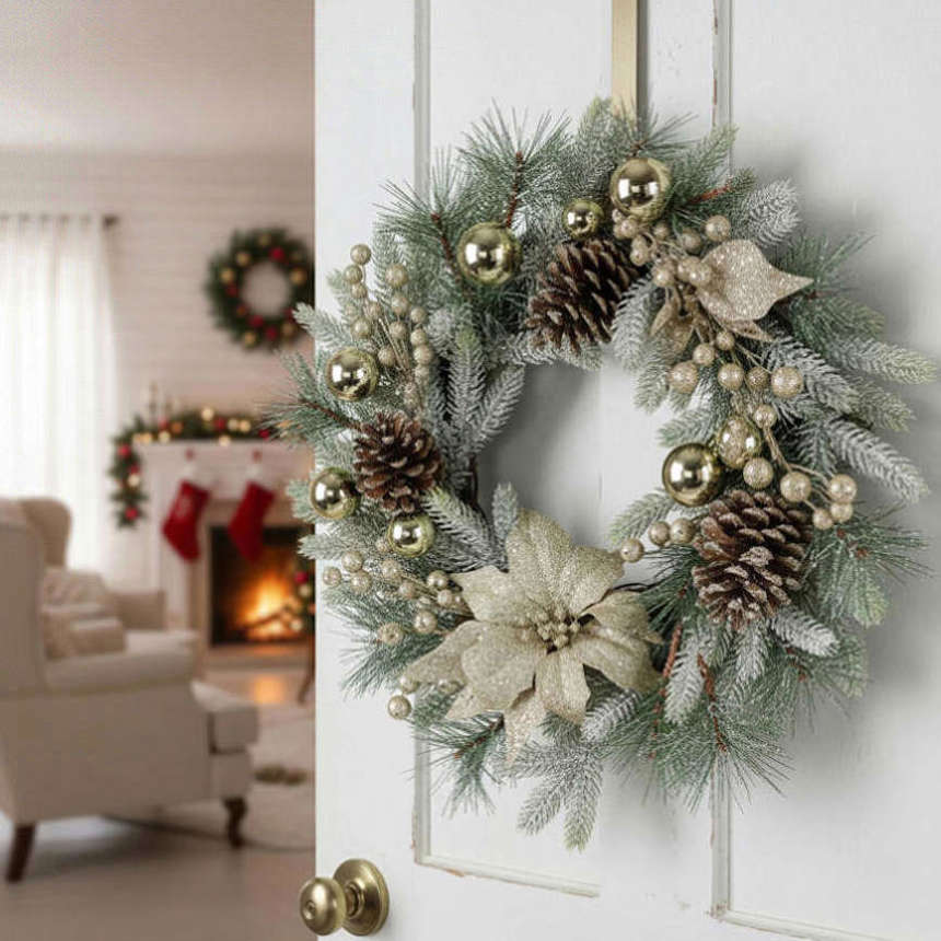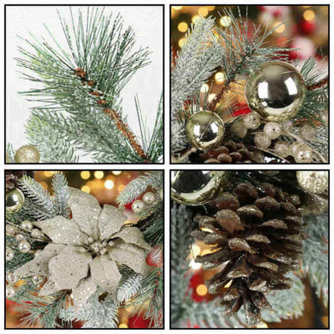 Handcrafted Realistic Details: Meticulously crafted with Christmas balls, pine cones, golden twigs, pine needles, and silver berries on natural branches. Ultra-realistic texture mimics fresh greenery, adding lifelike charm to your decor.