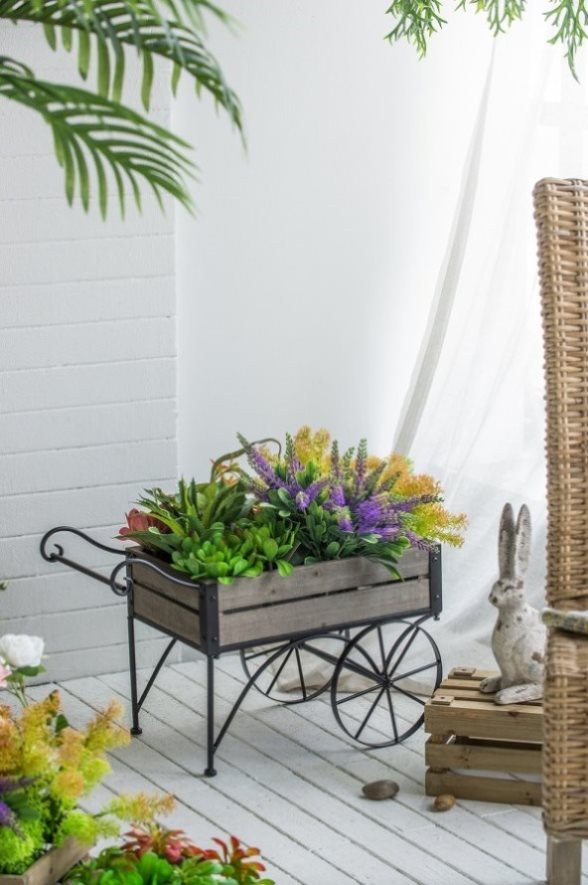 Ideal for a small ensemble of potted plants, the color of your displays will surely catch the eye of guests in contrast to the neutral hue of the cart.