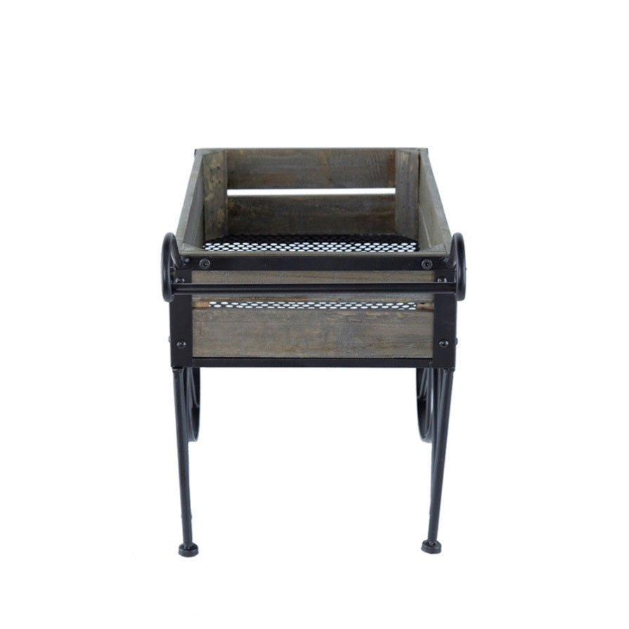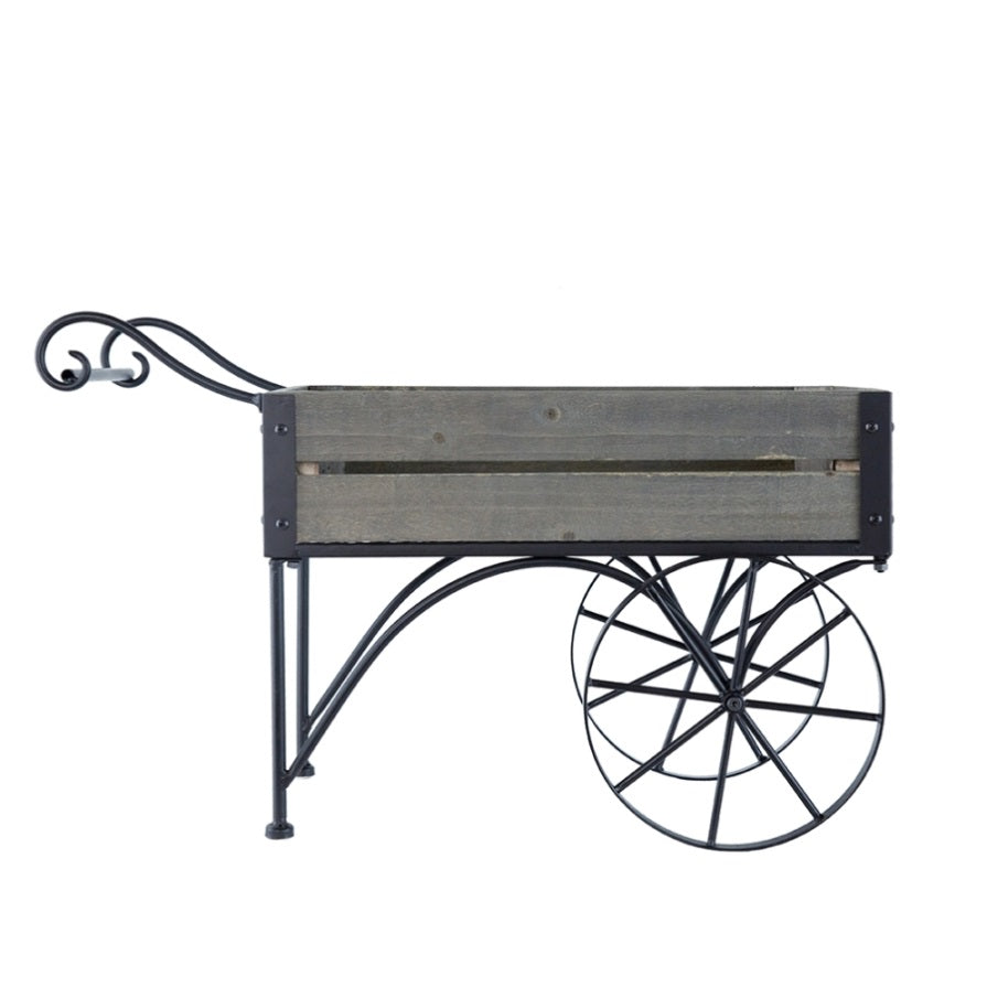 24.4x12.6x15.4" Rustic Black Trolley Cart Plant Stand, Planter W2078P322246