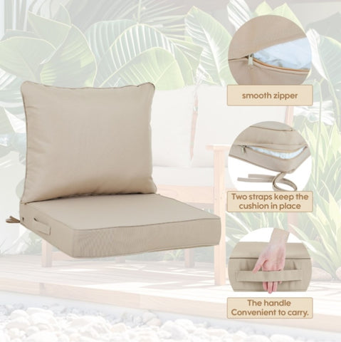 24x24 Inch Outdoor Deep Seat Cushion Set - Waterproof Fade-Resistant Patio Furniture Cushions with W419P290474