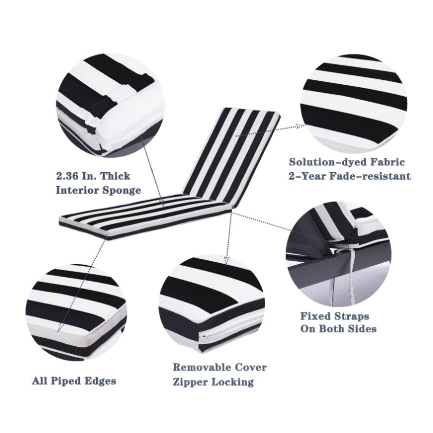 Practical Design: An adjustable strap is designed at the back of the cushion cover, which greatly increases the adaptability of various types of chaise lounges.The seat cushion is also provided with straps, hold the seat in place