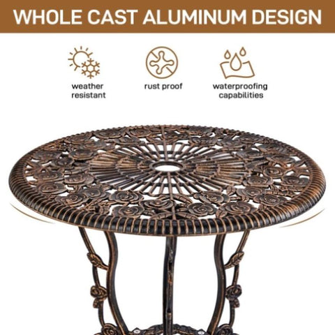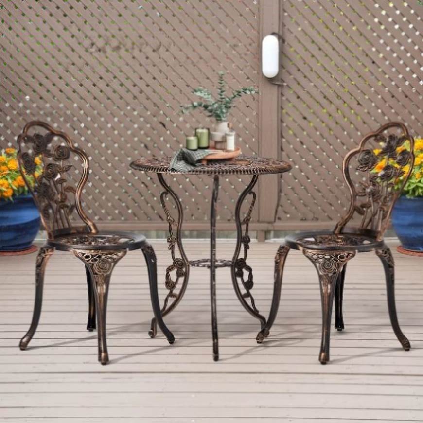 3 PCS Outdoor Bistro Set,Outdoor Patio Set, All-Weather Cast Aluminum Bistro Table Set for Backyard, 59012071