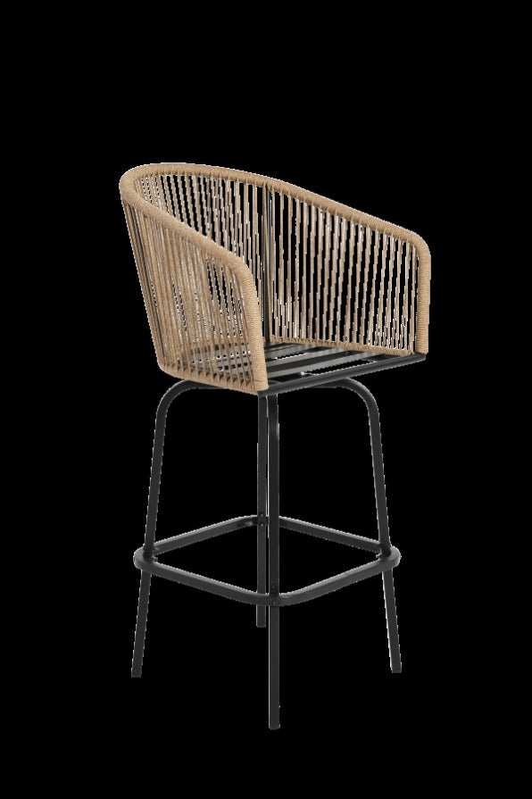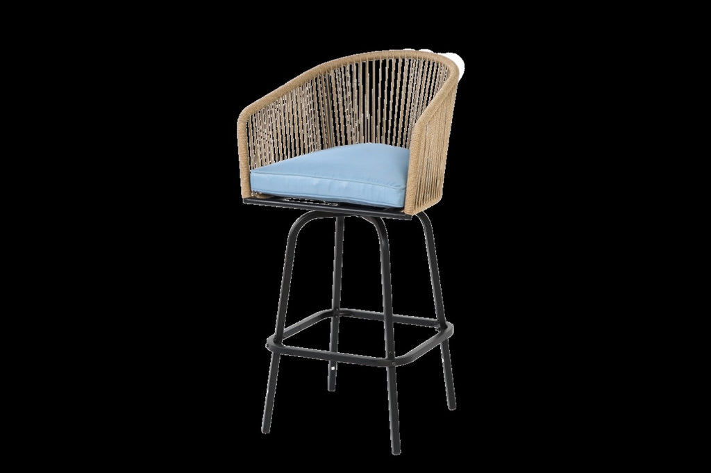 Combines ergonomic high back design with seamless swivel functionality, this bar set provides a stylish and elevated seating option that adds flair to any space. Patio bar table features elegant DPC woodlike table top