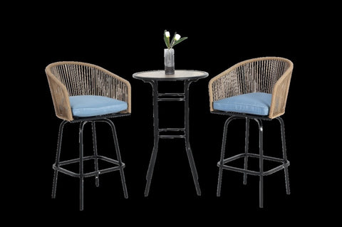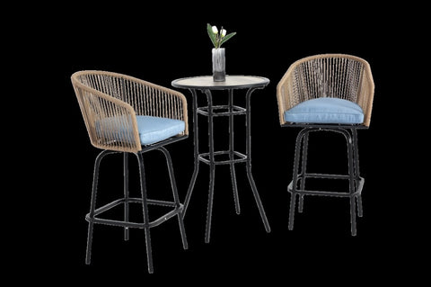 3pcs Outdoor Bar Set, Patio Bar Table and Chairs Set, Bar Height Patio Set - 2 x Swivel Bar Chairs , W640P256799