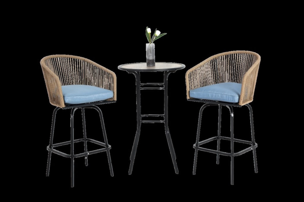 3pcs Outdoor Bar Set, Patio Bar Table and Chairs Set-Blue