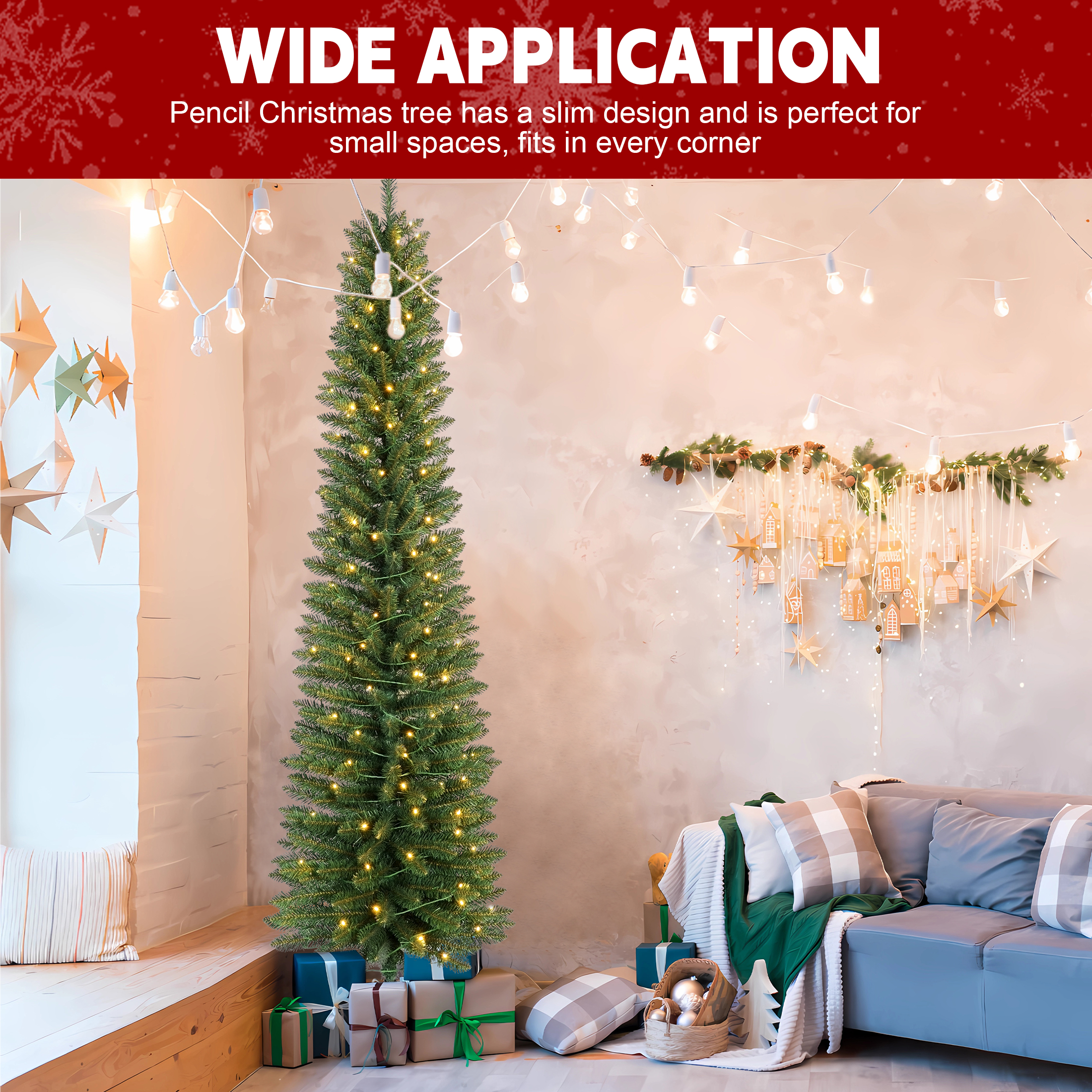 5FT Green Pencil Christmas Tree with 100 Warm White LED Lights Slim PVC Tree with 263 Tips, 35051404
