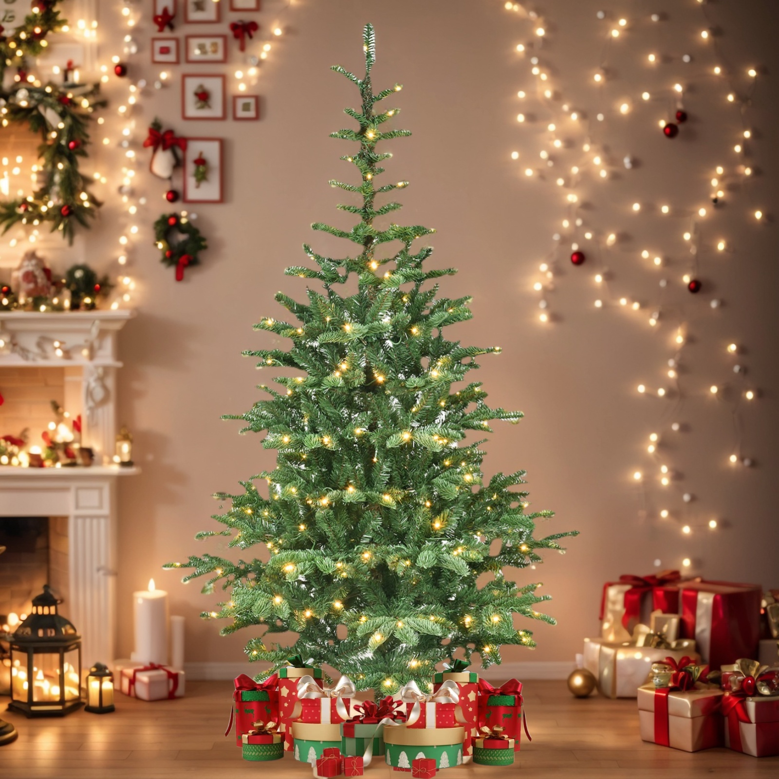 5ft Pre-Lit Christmas Tree with 200 Warm White LED Lights, 403 PEPVC Tips, Realistic Layered Look, 62334773