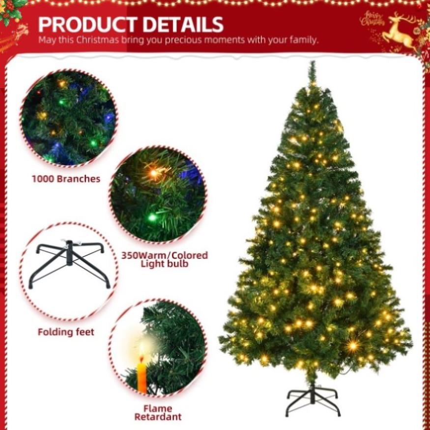 6 FT Pre-lit Artificial Christmas Tree, Hinged Xmas Pine Tree with 1000 Branch Tips, 350 Lights and 25437080