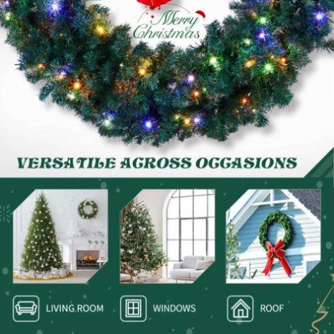 60in Pre-lit Christmas Wreath, Lighted Artificial Xmas Wreath with 220 Warm & Multi-color Lights and 16380976