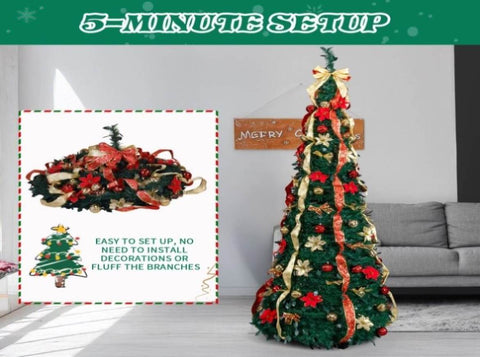 3. Effortless Assembly & Storage: This pop up tree features a quick and easy pull-up design, allowing you to set it up in just minutes. After the holiday, simply collapse it down for compact storage, saving you time and space.