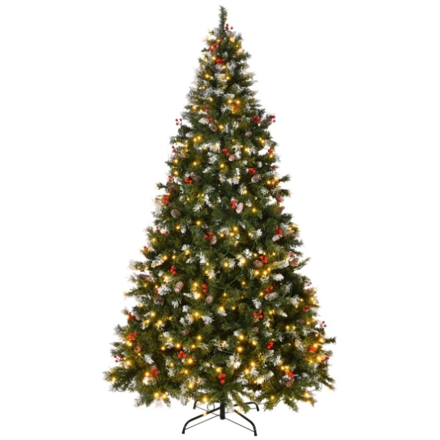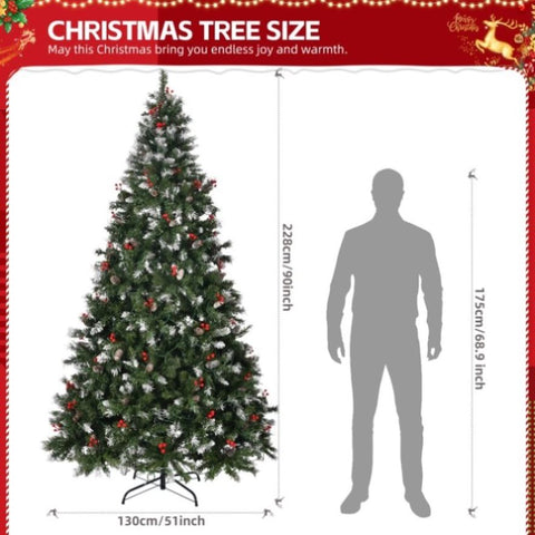 7.5 FT Pre-lit Artificial Snow Tipped Christmas Tree, Hinged Xmas Pine Tree with 1368 Branch Tips, 84208916