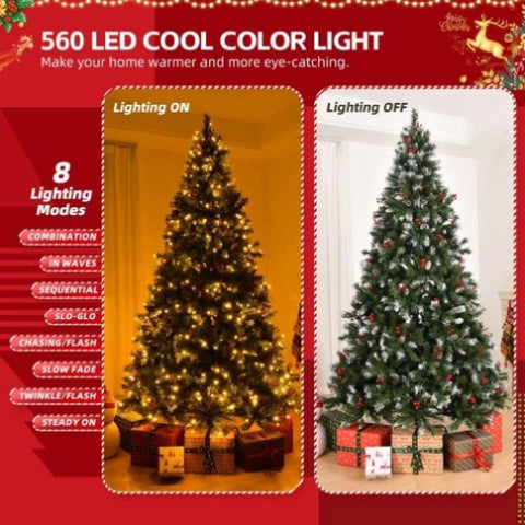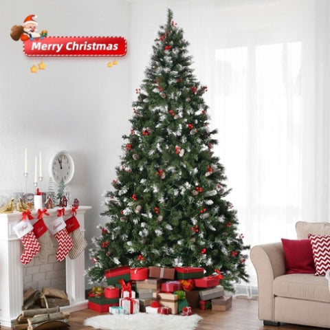 2. Snow-Tipped Charm: Each branch tip of this tree is lightly frosted with pine cone and berry accents, capturing the magic of a winter wonderland. The delicate snow-kissed tips bring the outdoors in, creating a stunning, festive focal point that's perfect for showcasing your holiday decorations.