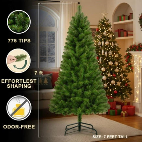 7FT Christmas Tree with 775 Tips Artificial Plant Full PVC Branches Green Unlit Holiday Tree Sturdy 40218551