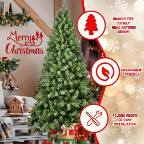 Full Appearance with 1072 PVC Branch Tips - This 7ft Christmas tree features 1072 thick PVC tips, providing a classic, full-bodied shape ideal for hanging ornaments, ribbons, or tinsel. Great for small spaces with big holiday style.