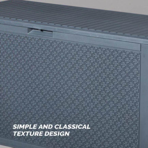 Do you want a great storage solution for your garden or garage? An instant solution for outdoor storage allowing you to store, cushions, tools, toys, garden equipment and other items safe, secure and dry for a clutter-free garden. An ideal outdoor addition to any garden for those who like their storage solutions both elegant and practical. Our storage box is built out of a low maintenance durable plastic to keep items such as patio accessories and chair cushions dry and ventilated as well as provide full weather resistance.This box is an ideal storage solution for your garden essentials such as garden tools, cushions, outdoor toys etc. Easy to assemble with no tools required, it is manufactured from a durable weather-resistant plastic construction which is UV resistant & has moulded side handles for easy portability. It is also lockable with an integral padlock hasp for added security (padlock not included).