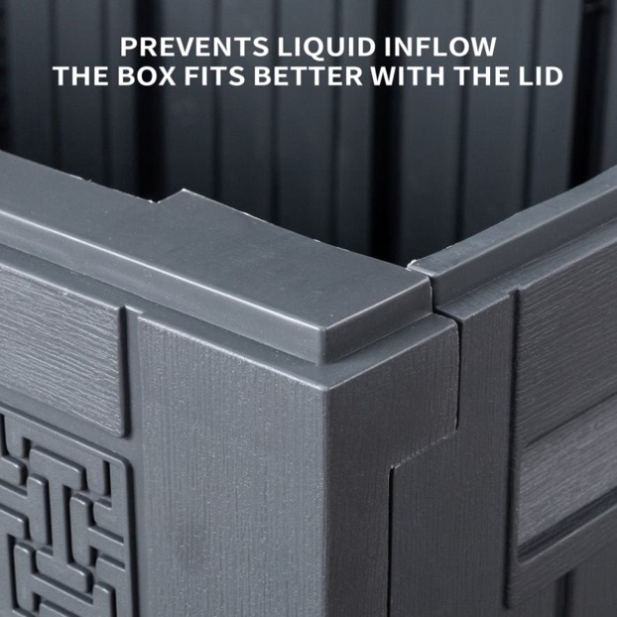 90GAL Garden Storage Box With Wheels - Formed in hard wearing and durable plastic which is weatherproof, and UV resistant. Fully sealed design protects against insects and other pests