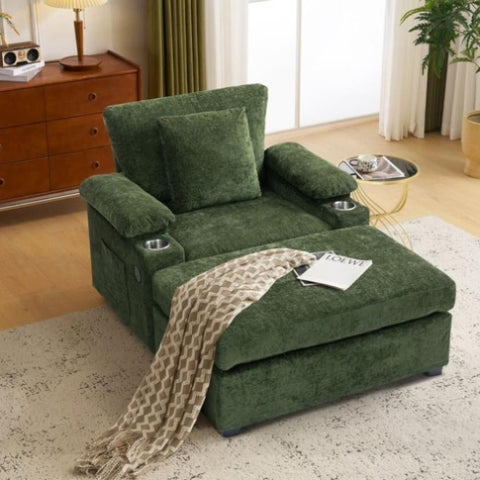 Modern Oversized Chair with Ottoman,Chenille Fabric Sofa Bed,Accent Chair Comfy Sofa with Cupholders W2606P293158