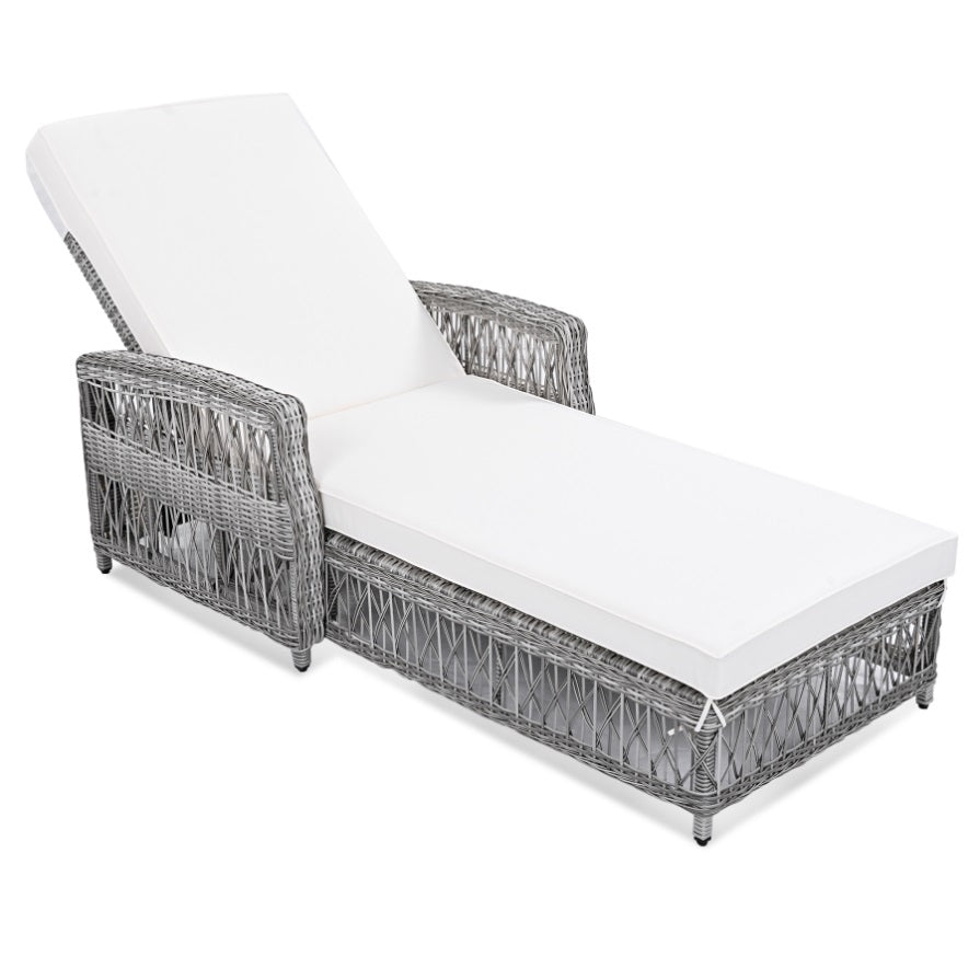 Outdoor Long Reclining Chaise, Wicker Lounge with Armrests, Patio Adjustable Recliner with Soft 81501367
