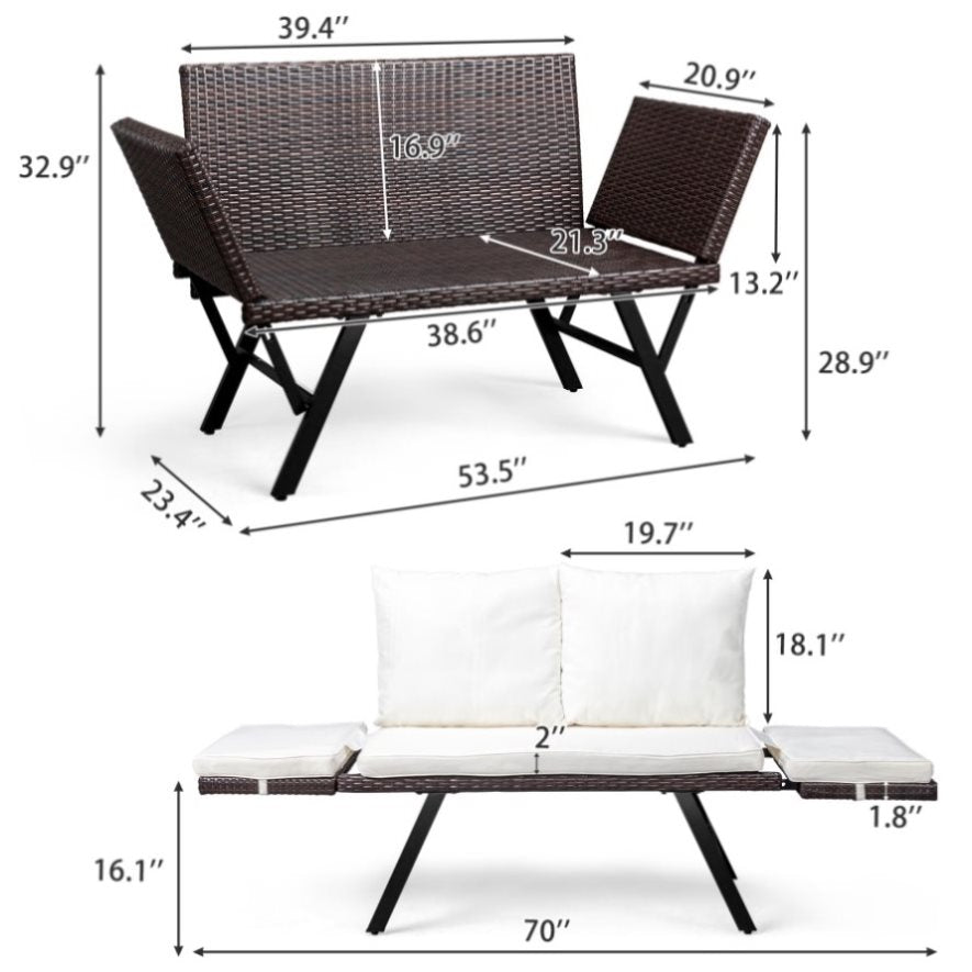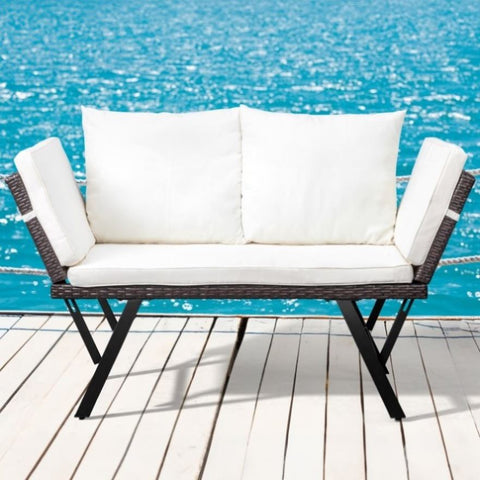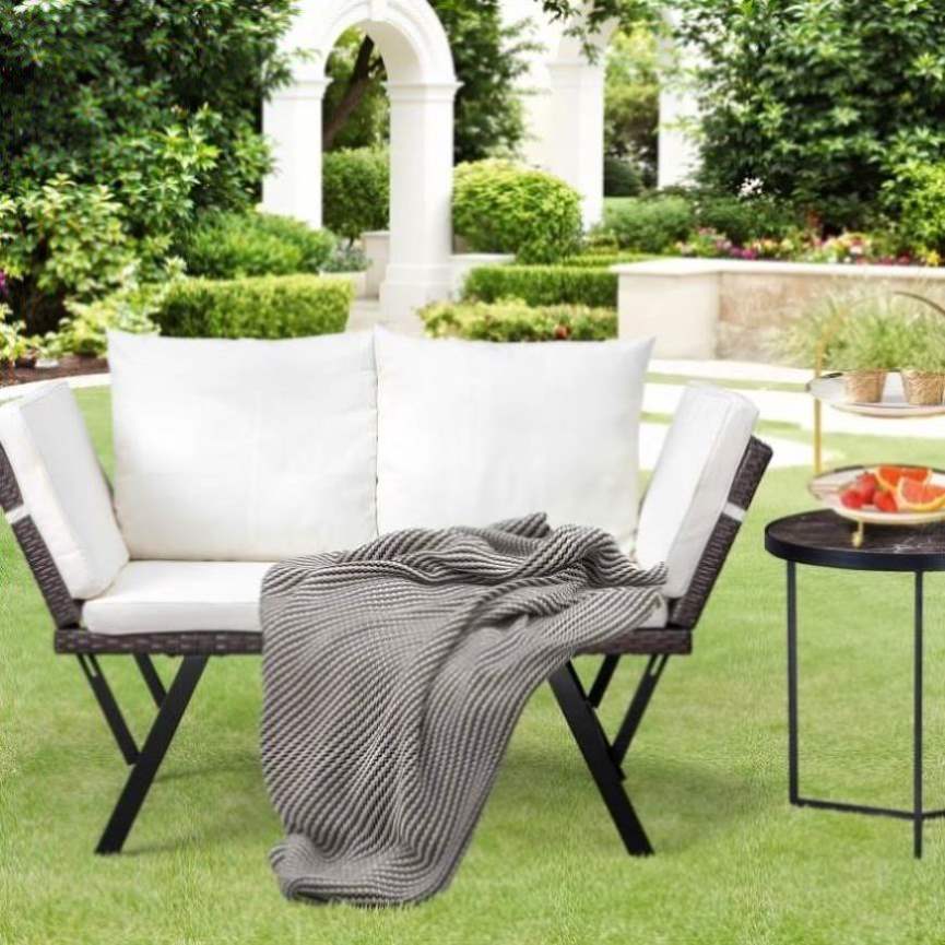 Transform your outdoor space with this stylish and versatile Outdoor Sofa. Designed with high-quality woven rattan, this convertible daybed or double chair offers comfort and durability for year-round outdoor relaxation. The adjustable armrests provide customizable comfort, allowing you to easily convert the sofa into a bed, reclining chair, or traditional seat. Paired with soft cushions and pillows, this lounger delivers a cozy experience whether you're lounging by the pool, relaxing on the porch, or enjoying a sunny day in the yard. The weatherproof rattan and removable cushion covers ensure long-lasting use and easy maintenance.