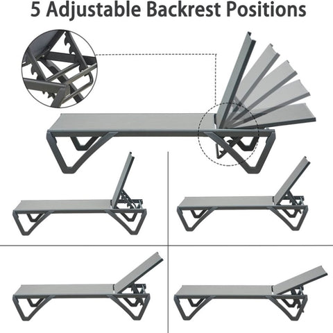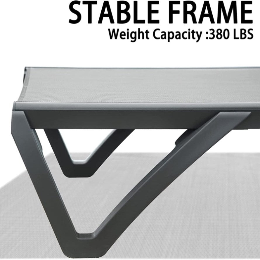 High-Quality Material- This chaise lounge outdoor comes with sturdy aluminum frame and premium Texitilene fabric, which is durable and resistant to weather conditions. And the Texitilene fabric is a lightweight material that is breathable and quick dry, allows air to circulate and ventilates body heat on a hot day.