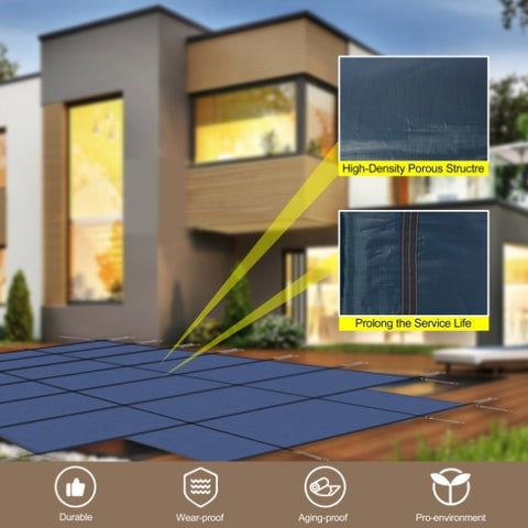 Tight Mesh Design for Superior Protection: Featuring a tight mesh construction, our pool cover effectively drains water while keeping out leaves, snow, and other debris. The cover blocks sunlight, preventing algae growth and ensuring a clean, clear pool when the warmer months return.