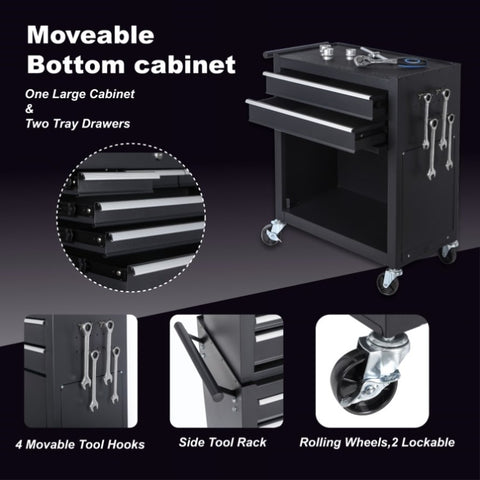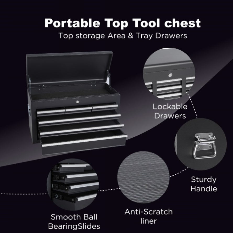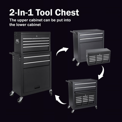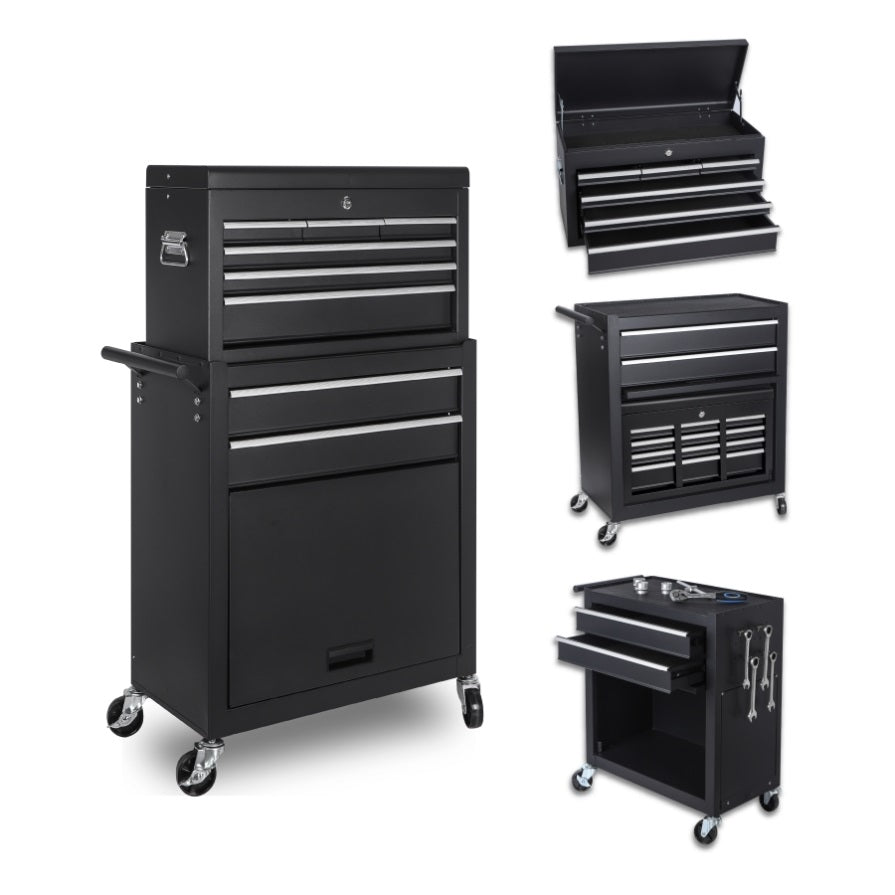 Mobile and Versatile Design: Equipped with four universal casters, two of which are lockable, this tool cabinet allows for effortless mobility and stability within your workspace. The comfortable side handle further enhances maneuverability, while the detachable top chest adds versatility, enabling you to transport or use it independently.