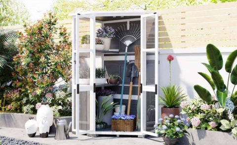 [Garden Shed & Mini Greenhouse in One] This versatile shed can double as a mini greenhouse or a handy garden tool storage unit, all thanks to its sturdy fir wood frame and transparent polycarbonate panels. Whether you're nurturing delicate plants or organizing your gardening tools, this structure fits perfectly in your backyard. It combines the functionality of both, giving you a space-efficient solution for growing, storing, and enjoying your outdoor hobbies.