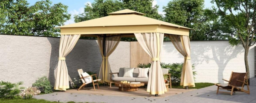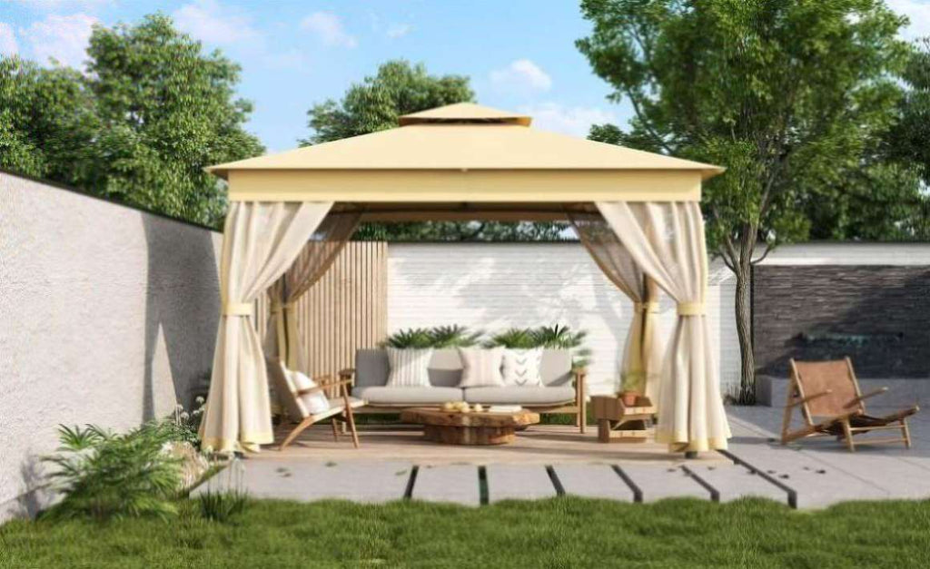 Large Accommodation Space: 120 square feet of coverage is spacious for 4-8 people to entertain. Please measure the size of your platform and furniture according to the picture before buying. In additional, available in two elegant color options and two practical sizes, this gazebo adapts seamlessly to compact balconies or spacious backyard setups or para patio exterior to meet your any needs.