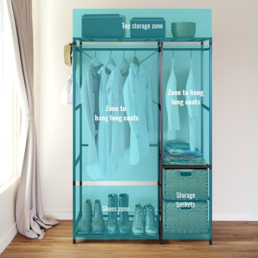 Elegant & Functional Garment RackCreating extra storage in small spaces is effortless with this freestanding clothes rack. Designed as a perfect closet organizer system, it maximizes space for your clothes, shoes, handbags, and even luggage. Ideal for narrow corners, bedrooms, or closets, this rack blends practicality with style.