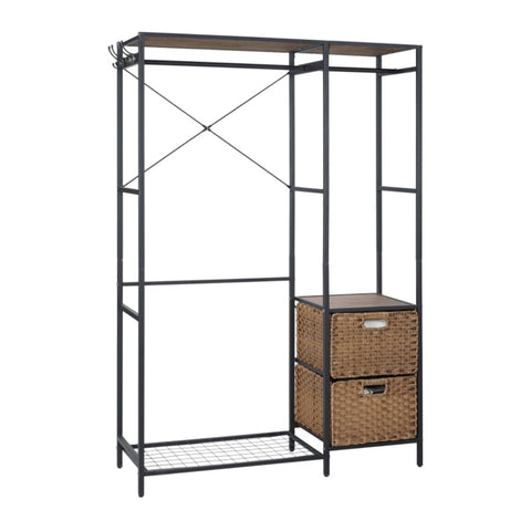 Acacia Wood Garment Racks with Shelves 2 Wicker Drawers and 4 Hooks Heavy Duty Closet Organizer for W2391P289978