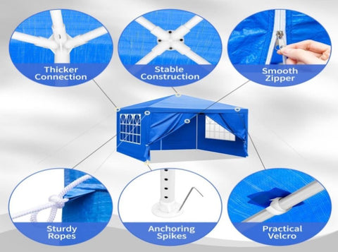 1. Easy Assembly: Our party tent is easy to set up with clear instructions and no need for extra tools. Invite a friend to help you keep the frame steady while you assemble the steel tubes and covers.