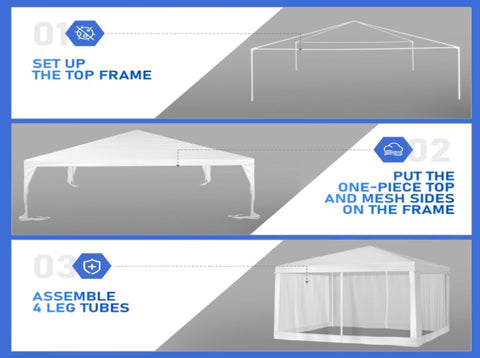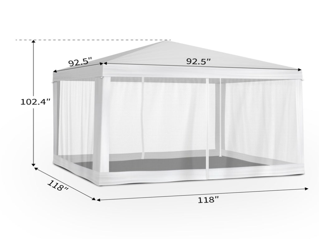 Take such a practical 10X10FT tent for daily use! It will provide you with happy time in the open air! The top canopy is made of 90G PE fabric, which is waterproof and is a great sun-coverage solution, and the 4 meshing netting sidewalls protect you from insects and mosquitoes to makes it extremely fit for outdoor activities. In addition, this party tent come with great durability and reliability. It is easy for installation and disassembly! Do have a try with our Tent, Set it up on your lawn or on your patio, or take it during camping, and get ready to enjoy delightful outdoor life!
