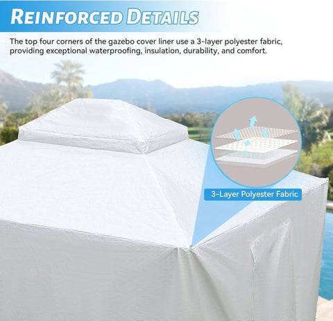 Enhanced Windproof Design: With an extended 8.7-inch length on all sides and pre-drilled holes, this cover can be securely anchored to withstand even the strongest winter winds. These features ensure that your gazebo remains stable and protected, no matter the weather.
