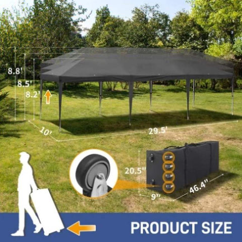 10x30ft Outdoor Pop Up Canopy, Portable Instant Canopy Tent for Outdoor Events Party Wedding 46161399