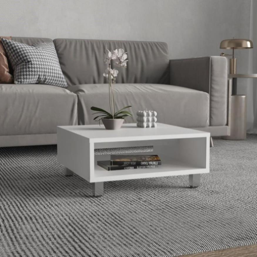 Open Shelf Design: The single open shelf offers easy access and ample space for books, magazines, and decorative items.