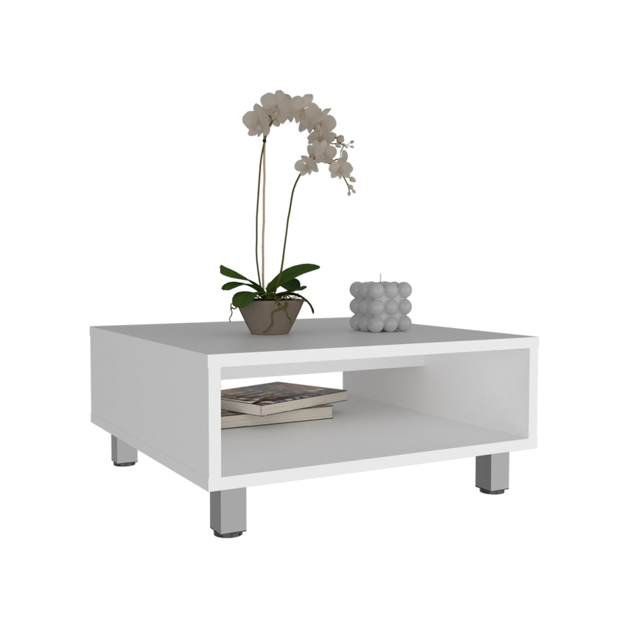 Eclipse 10" H Low Minimalistic Square Coffe Table with Open Storage White B070P254752