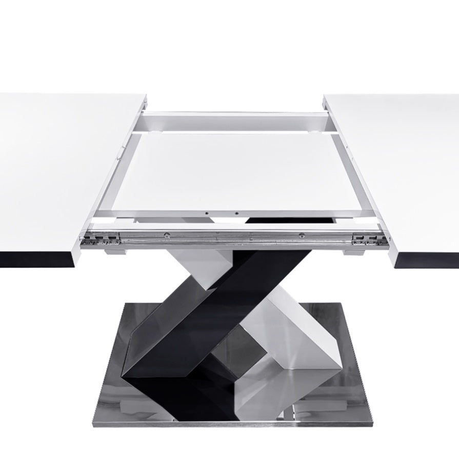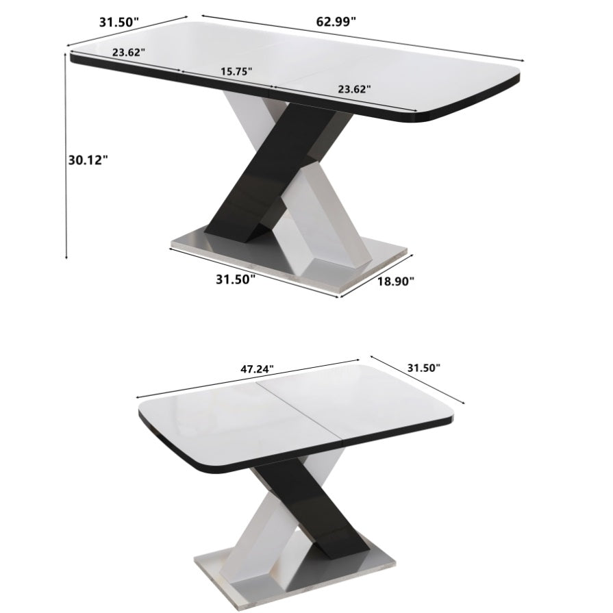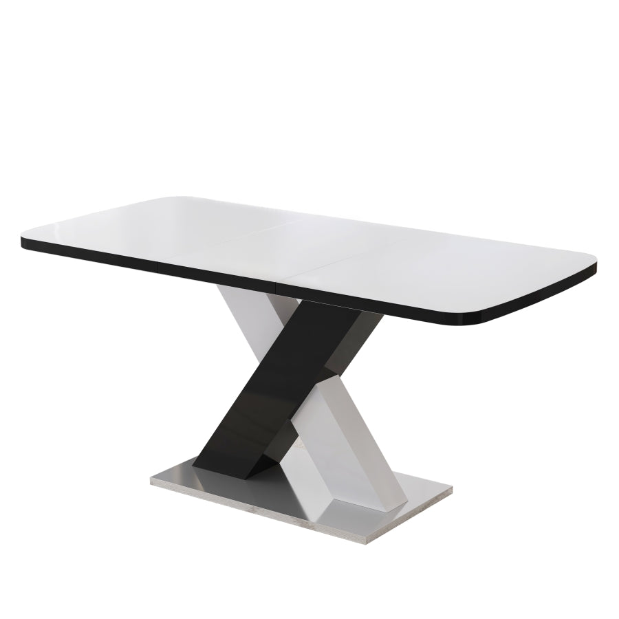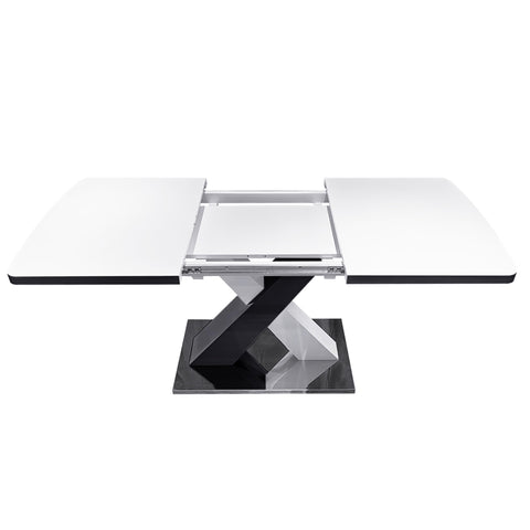 Modern Square Dining Table, Stretchable, White Table TopMDF X-Shape Black and White Color Table Leg W757P242760