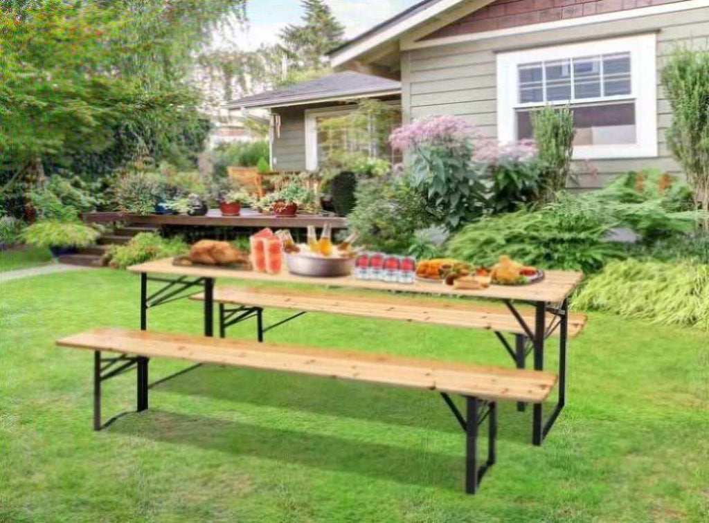 ● MORE STABLE DESIGN: There are three bench legs of each bench which could greatly increase the stability of the bench, more safe, more comfortable; The legs of table and bench could be foldable, easy and convenient to store
