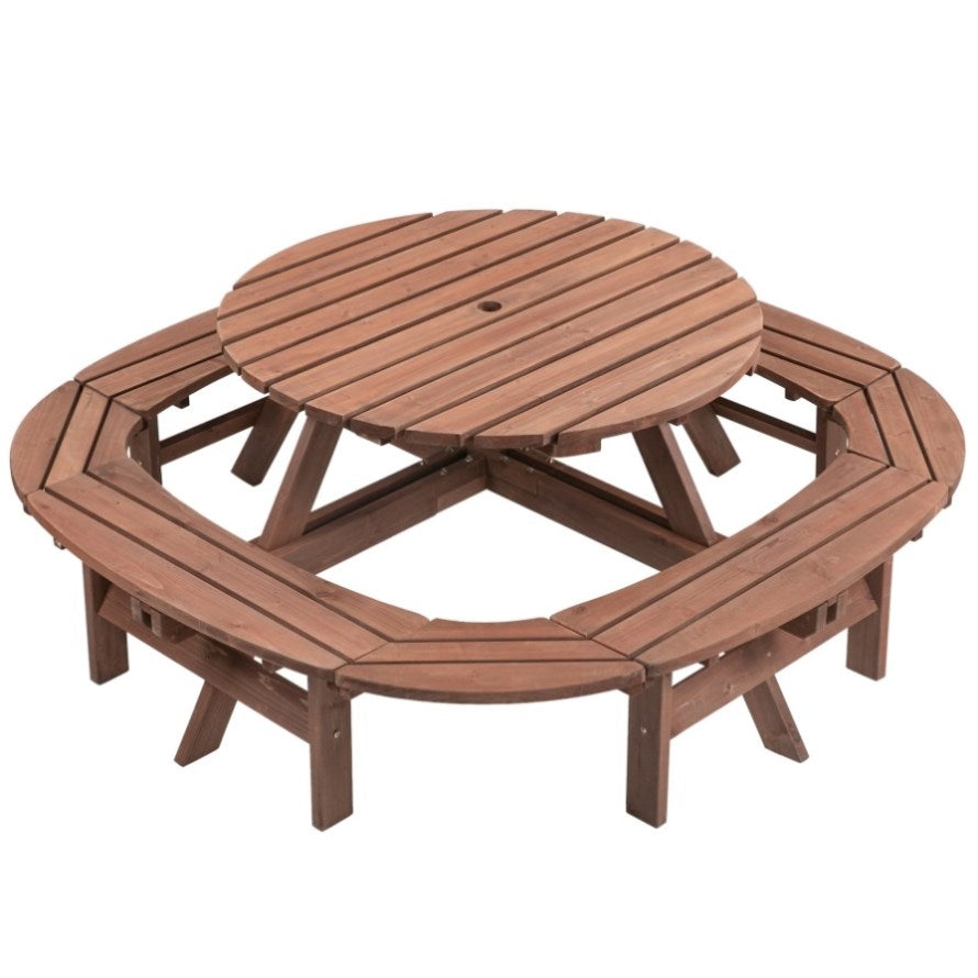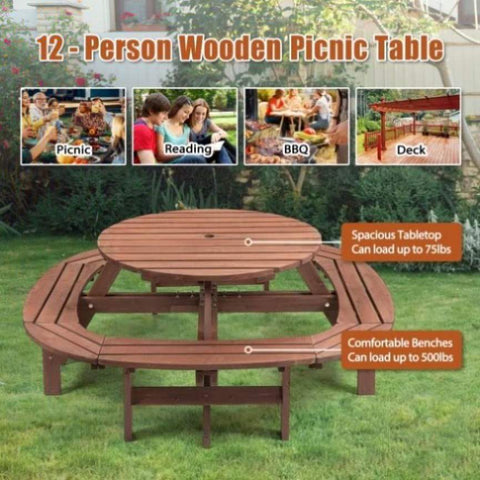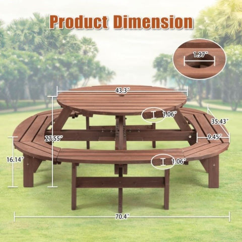 10-12-person Round Outdoor Wooden Picnic Table for Patio, Backyard, Garden, DIY with 1 Built-in Ring W1422P269604