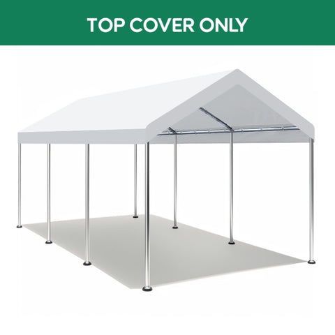HEAVY DUTY 10x20 FT CARPORT REPLACEMENT CANOPY COVER: canopy is crafted from 240g premium polyethylene fabric. Top-quality top tent is 18 mil thickness, provide excellent strength and durability and ensures reliable coverage and protection for your car. It is perfect choice for your 10 x 20 ft canopy replacement and offering long-lasting protection. (Note: Only carport cover, frame not included)