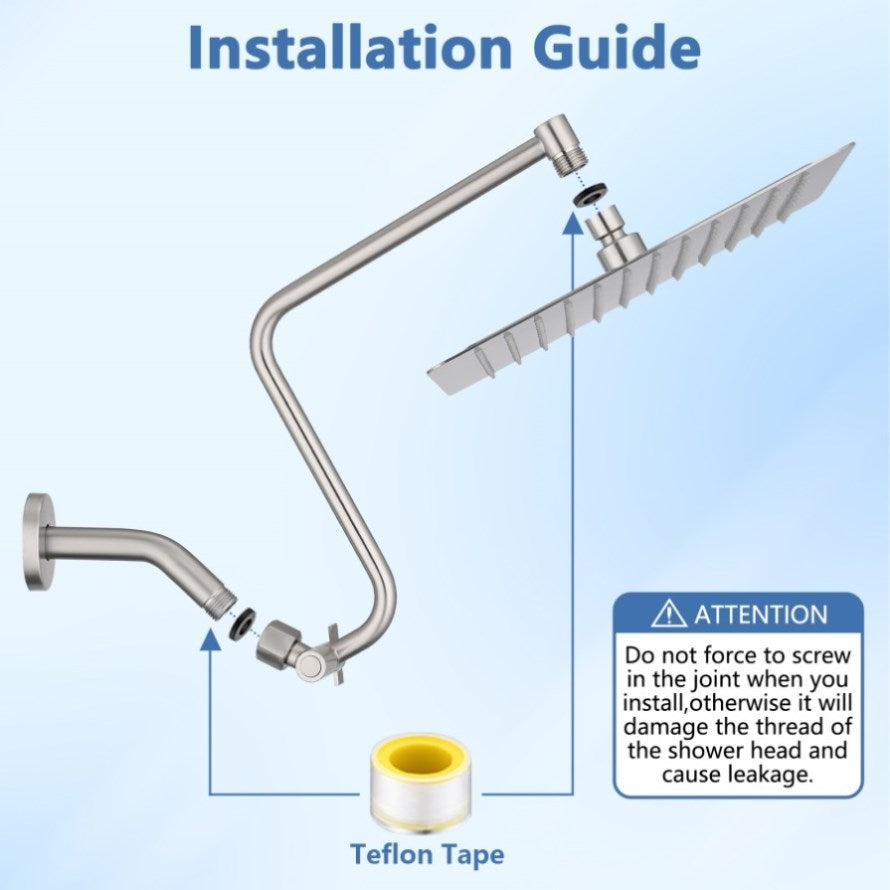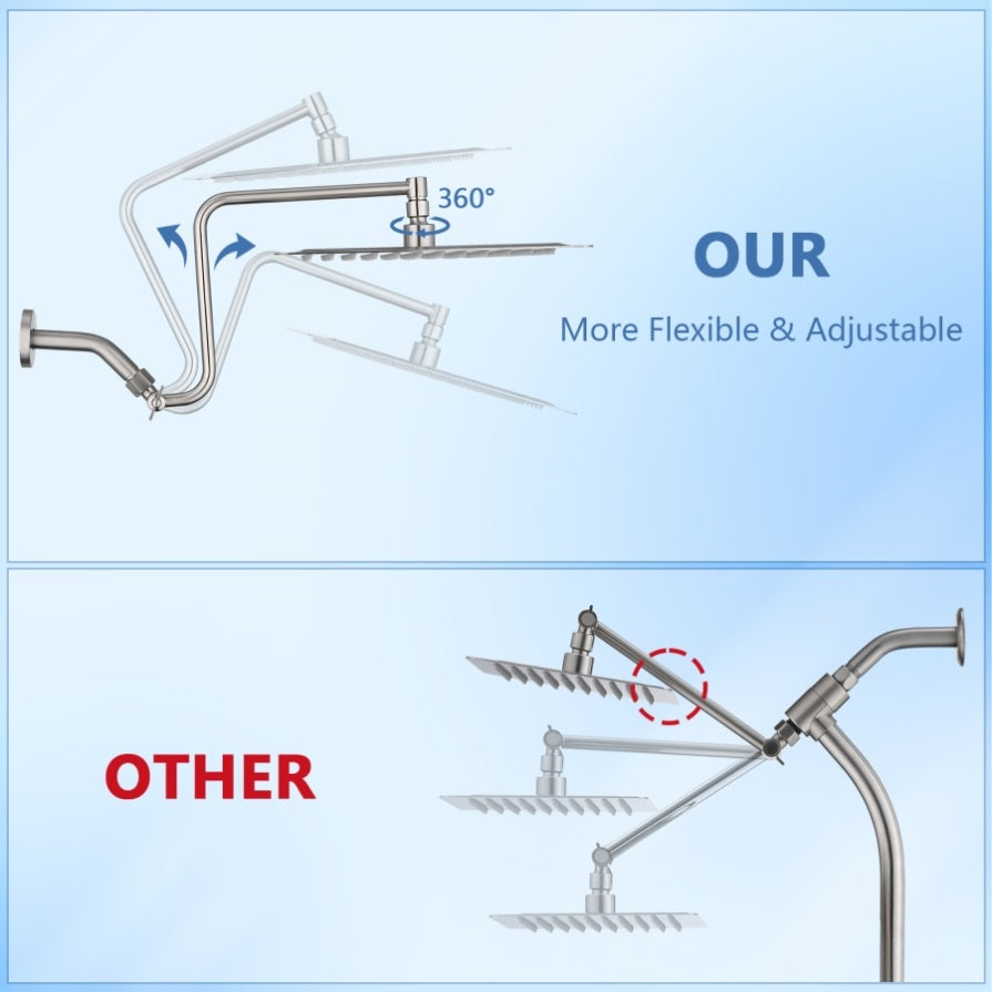 Adjustable extension arm is made of strong and durable material, no need to worry about breakage or leakage. Allows you to adjust the shower head for the best angle and height.