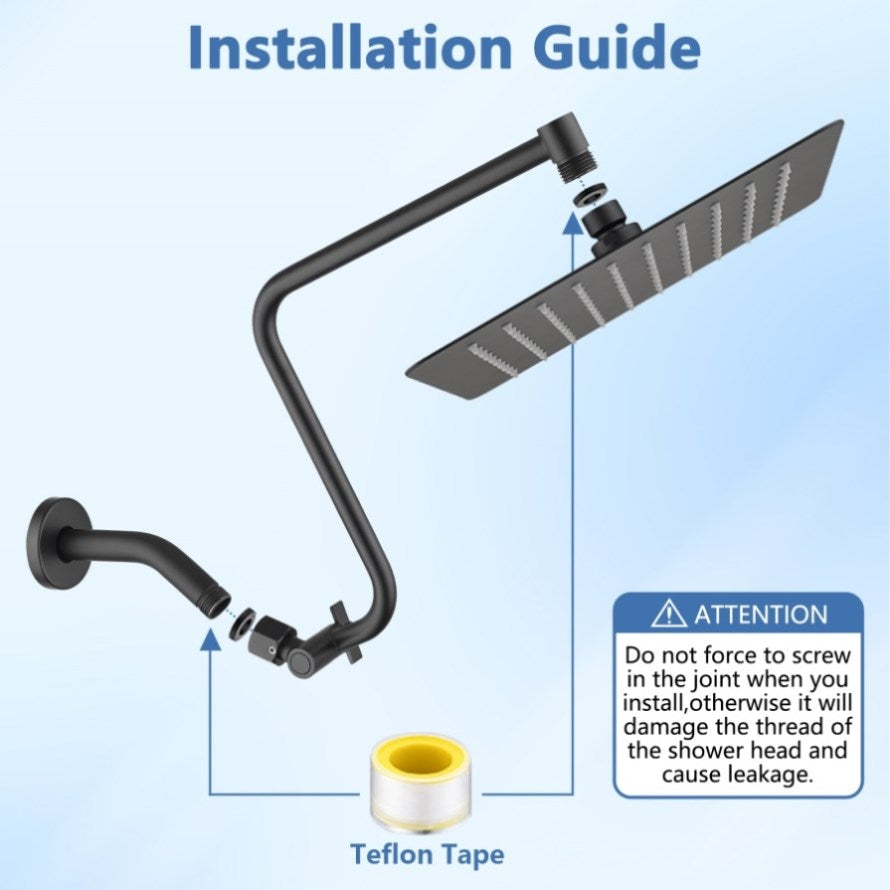 Adjustable extension arm is made of strong and durable material, no need to worry about breakage or leakage. Allows you to adjust the shower head for the best angle and height.