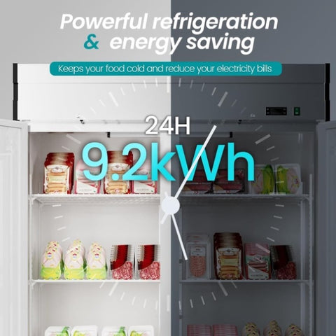 3RD GENERATION DYNAMIC COOLING SYSTEM: 100% Ture Air Cooling.Passed ETL&DOE compliance certification. With a dynamic cooling system, KICHKING commercial refrigerators can continuously circulate and evenly distribute the cold air around inside the refrigeration compartment. By utilizing lower environmental impact R600a refrigerant and high-efficient compressor provide superior cooling performance. Using our commercial refrigerator can greatly help keep the foods fresh and safe in a low energy