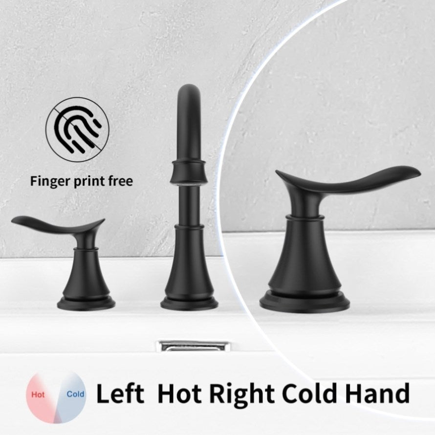 - Exquisite widespread bathroom faucet in Matte Black finish, shiny surface, anti-scratch, resist corrosion, no water spot and finger print, solid brass connector ensures long time using. Exceed industry longevity standards, ensuring durable performance for life.