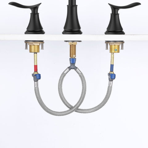 EASY INSTALLATION - 3-hole mount with 8-inch widespread design can help you install by yourself with 30mins, without a plumber and save the fee, the box contains all you need (including pop up drain and 9/16”Female Compression ThreadxM10 Male Connector,x2 Pcs (1 Pair)). unique fast connect construction, the hot and cold water can be mixed by quick-install pipe without wrench, through technique to prevent pipe burst.