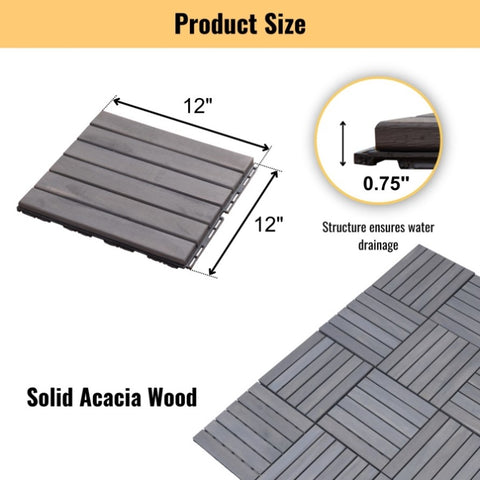 20 PCS Interlocking Deck Tiles Striped Pattern, 12" x 12" Square Light Gray Acacia Hardwood Outdoor W2391P276694