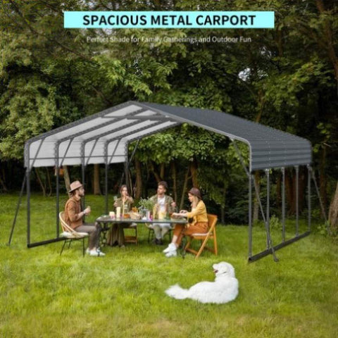 Built to Withstand the Elements: Industrial-grade 2"x2" steel framing paired with a rust-resistant galvanized steel roof delivers long-lasting protection. Reinforced triangular truss design and heavy-duty bolted connections create a rock-solid shelter that stands strong year after year.