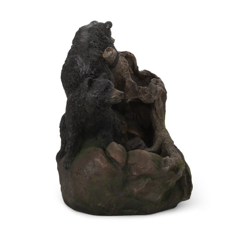 WATERFALL FLOW: With a gentle and relaxing water flow, this garden fountain uses an interior pump to bring a peaceful atmosphere to your outdoor space. This fountain features bears on a log and two tiers that create a beautiful waterfall effect.