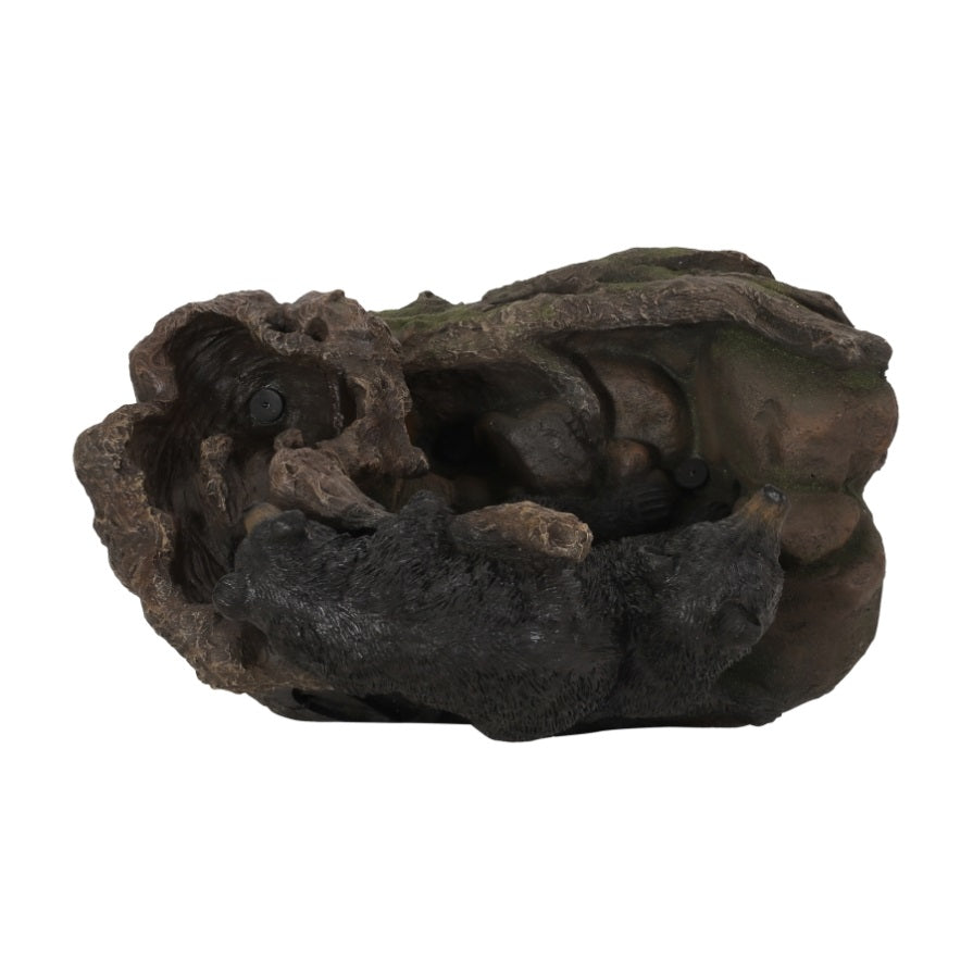 Bring a lighthearted yet tranquil atmosphere to your outdoor space with a charming accessory. Our garden fountain features a calm waterfall flow that continuously circulates using an included pump, bringing a playful aura to any backyard or patio. this decorative accessory offers a weather-resistant structure that allows outstanding attention to detail. Finished with bears on a log and enchanting underwater lights, our water fountain is sure to add a touch of whimsy to your home.