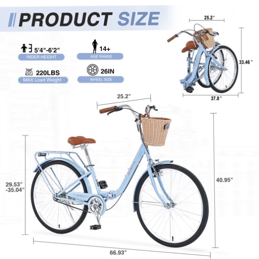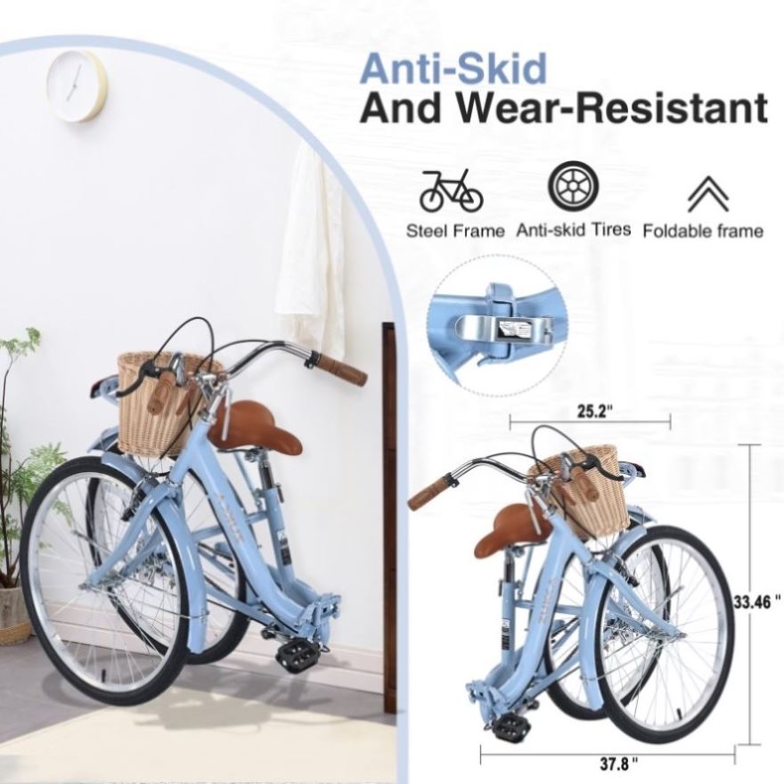 26 Inch Single Speed Folding Lady Bike , Durable Steel Frame,Compact Design for Easy Storage and W1019P248820